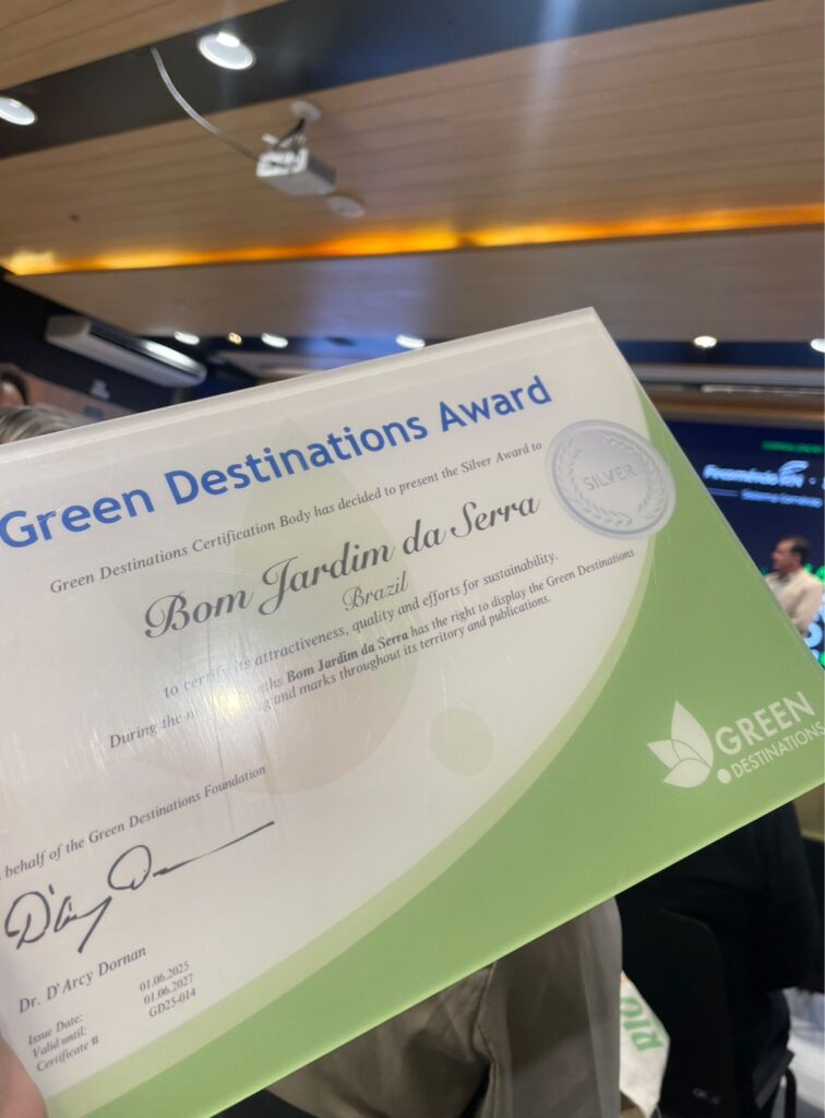 Bom Jardim da Serra acaba de alcançar um marco histórico: recebeu a certificação internacional nível Prata da Green Destinations, organização holandesa que reconhece destinos turísticos comprometidos com práticas de sustentabilidade. A entrega do selo, um dos mais respeitados do mundo no setor, aconteceu nesta quarta-feira (18), durante a Conferência Green Destinations Latinoamérica, em Natal (RN).